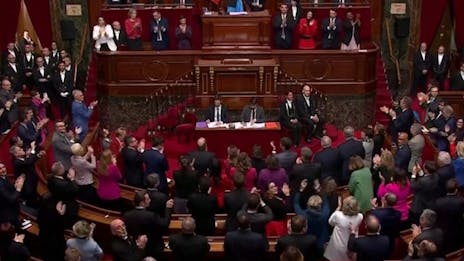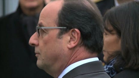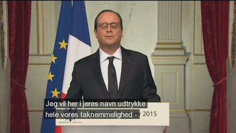 Frankrigs præsident, Francois Hollande, holder en tv-transmitteret tale til nationen.