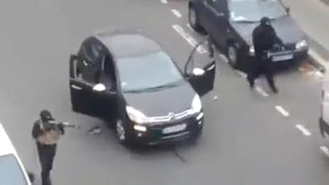 - Bilen blev stoppet midt på vejen. To store, sorte fyre klædt i militær-agtigt udstyr steg ud. De hev en mand på omkring 60 år ud af bilen bagved, en grå Renault Clio. De kravlede ind og sagde: ”Du kan fortælle medierne, at vi er fra al-Qaeda i Yemen.” Jeg var fem eller ti meter derfra. Fyren sagde: ”Vent lad mig få min hund.” De lod ham få sin hund ud af bilen, før de kørte videre. Politiet ankom fem minutter efter, siger vidnet Cedric Le Bechec til 20minutes.fr.